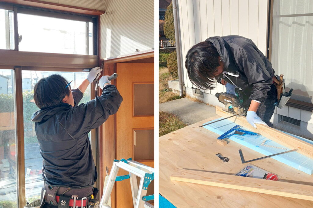 この現場はドアの絡みがあるので大工さんが枠の施工をしてから内窓を取付けました🔨