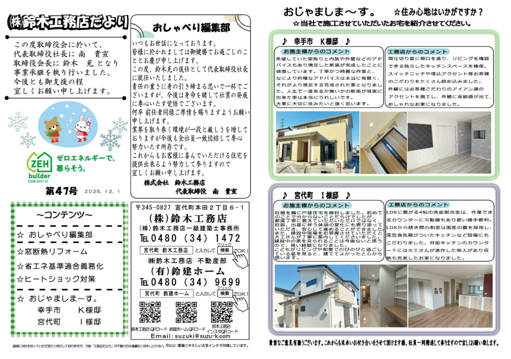 第47号工務店だよりを発行しました