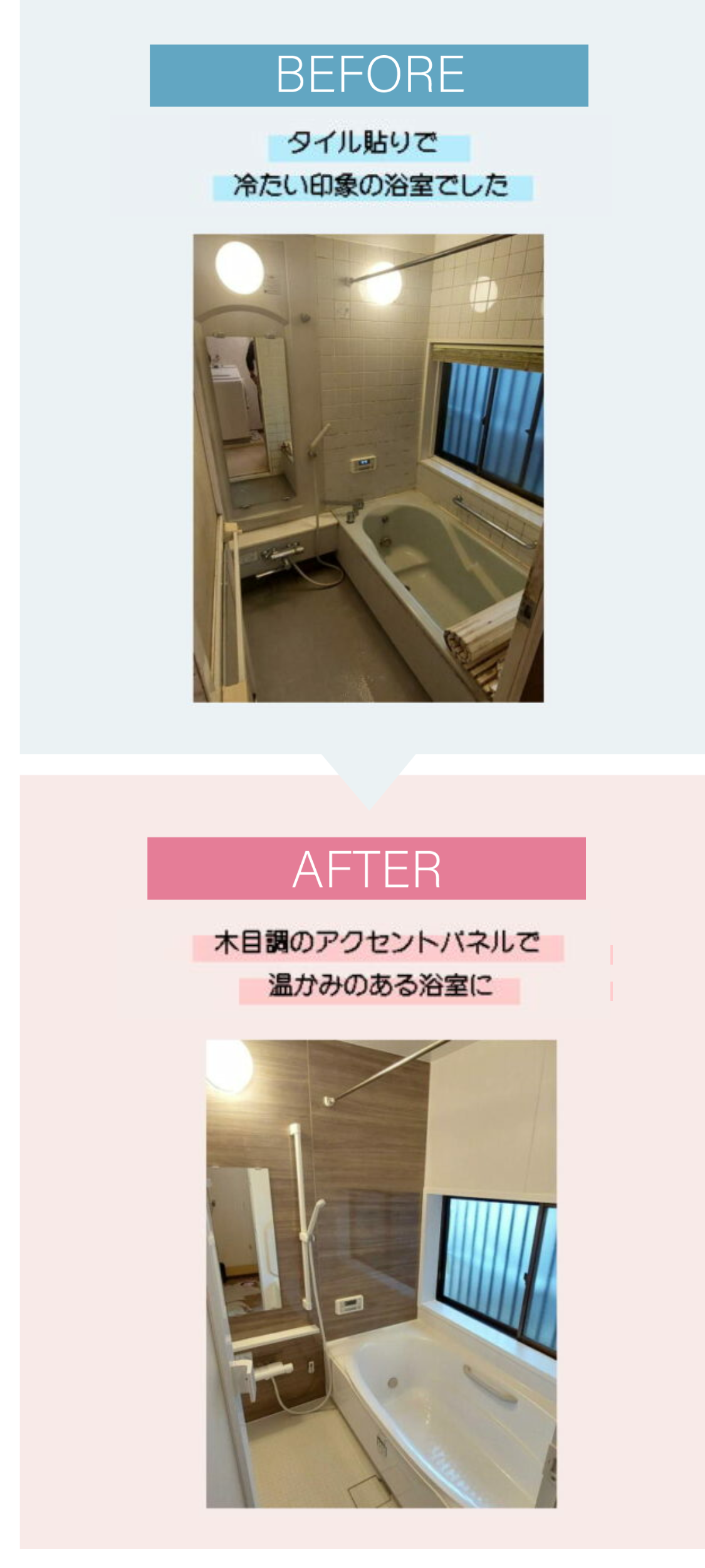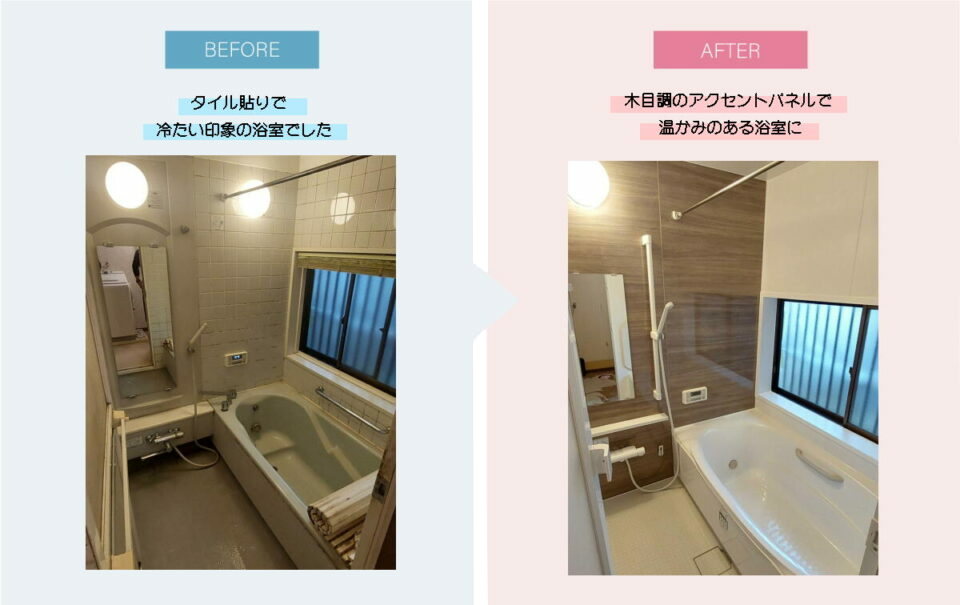 温かみのある雰囲気で、落ち着く浴室になりました。