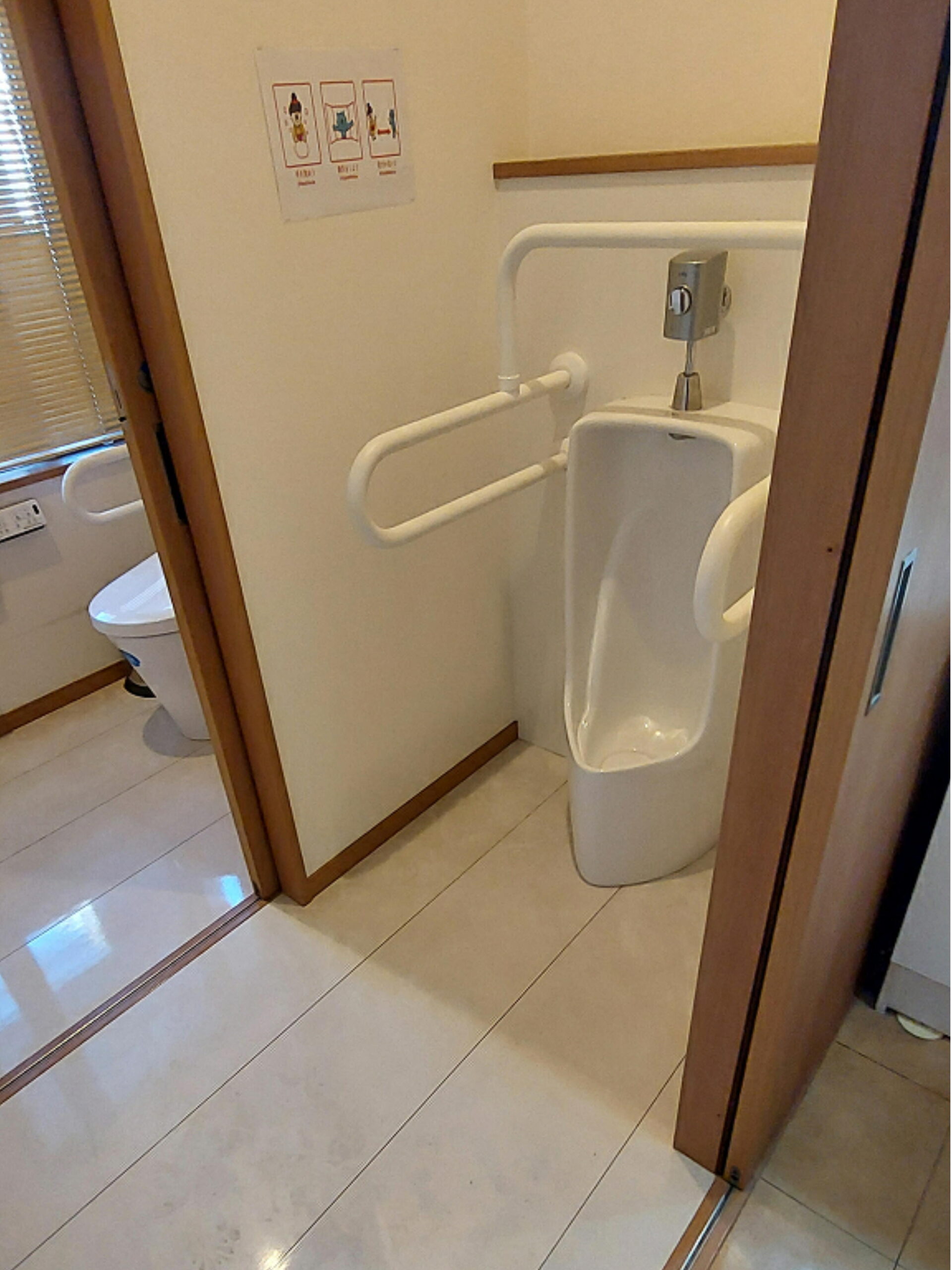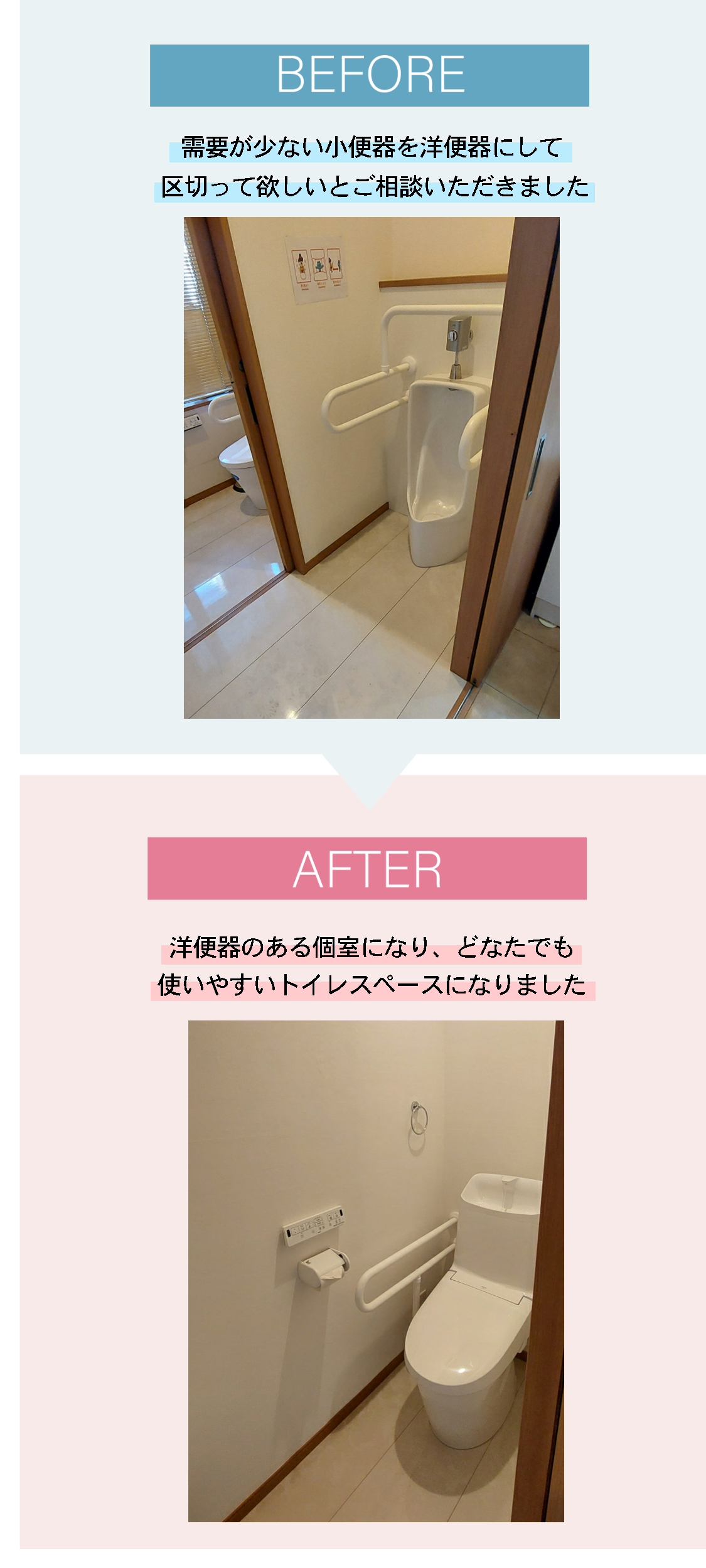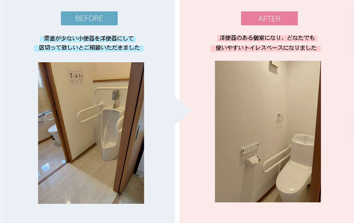 需要の少ない小便器があった場所を区切って洋便器のある個室に
