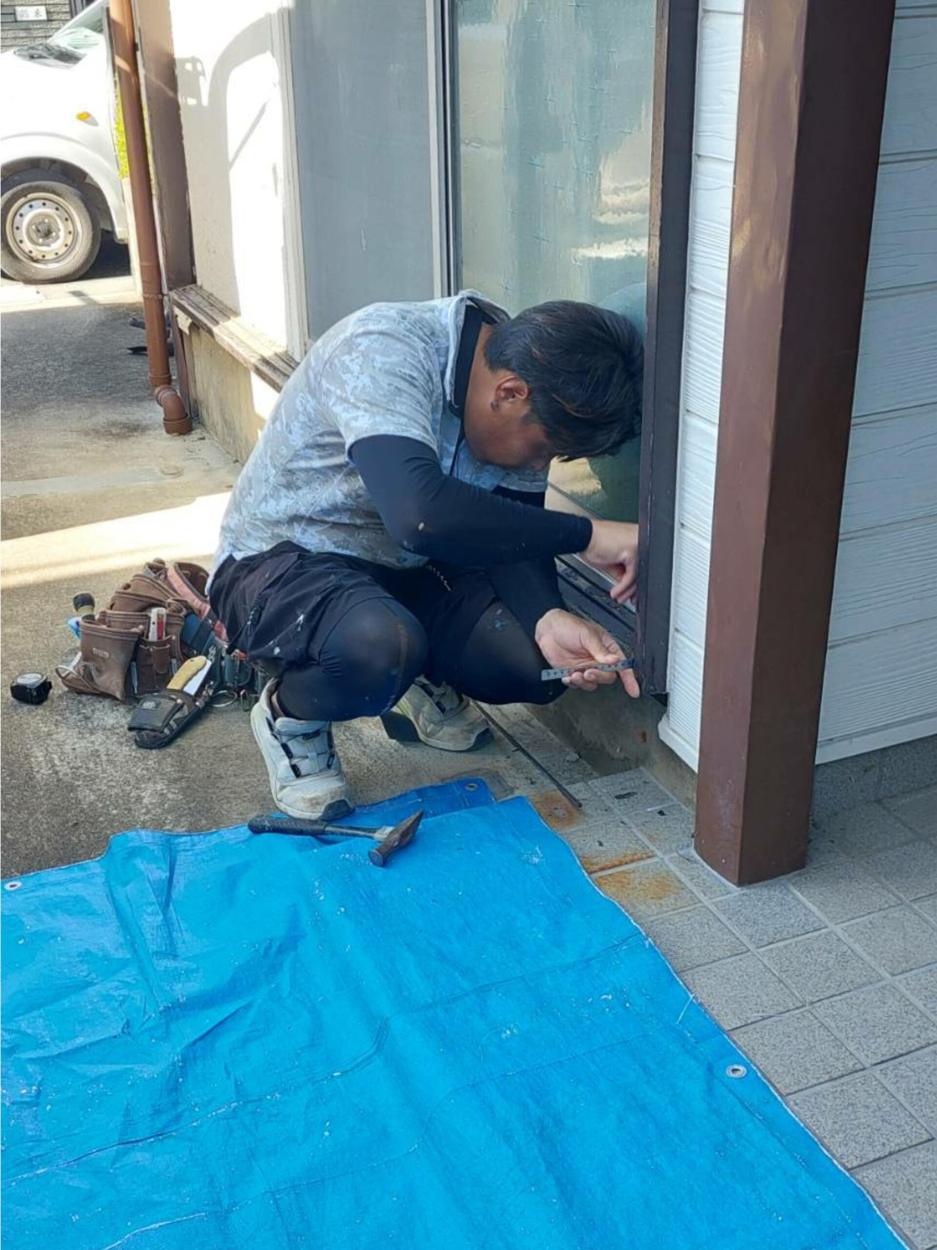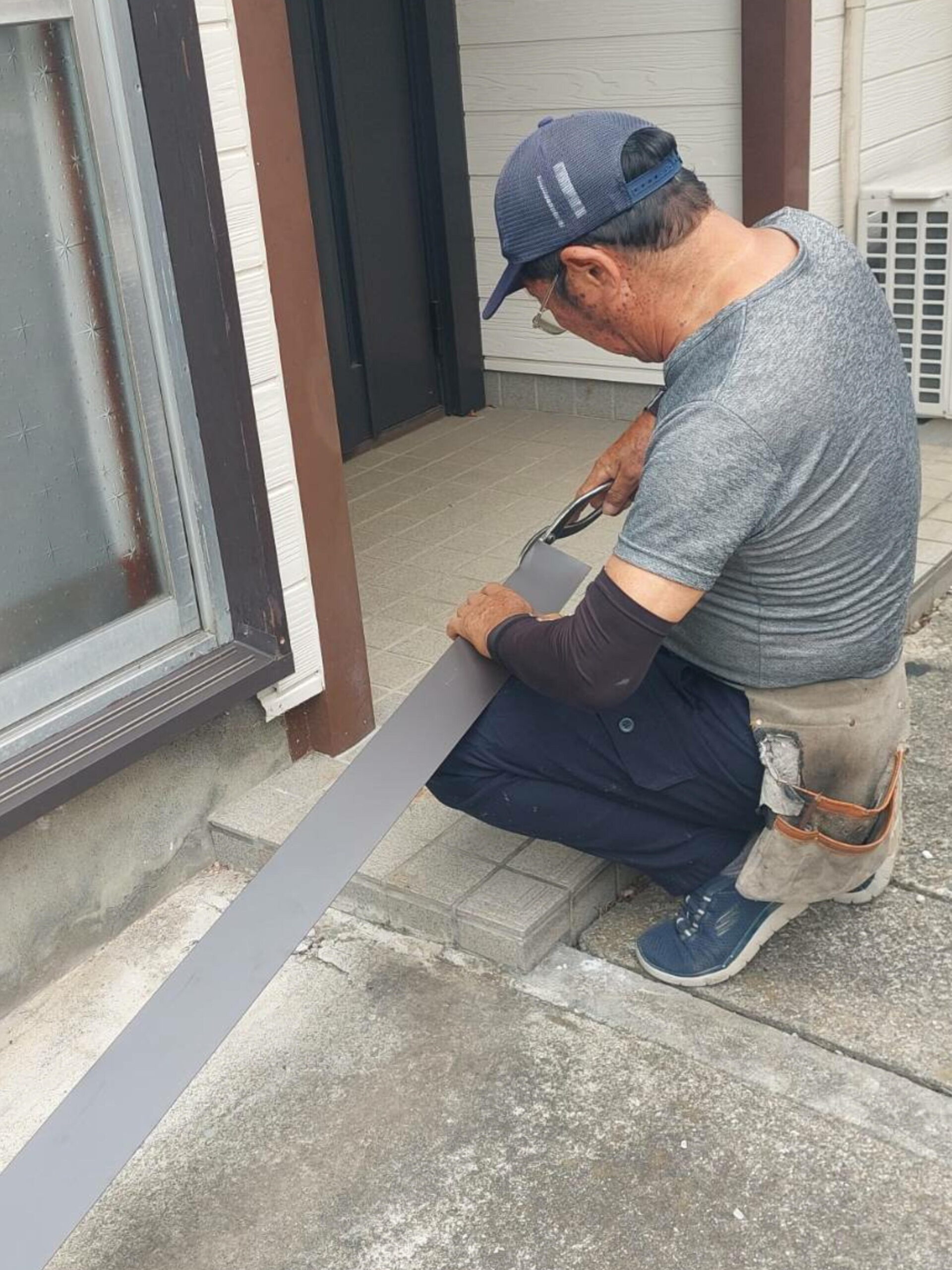 腐食していた敷居は大工さんが作業場で加工した桧の敷居にして、板金屋さんに木部をガルバリウム鋼板で巻いてもらいました。