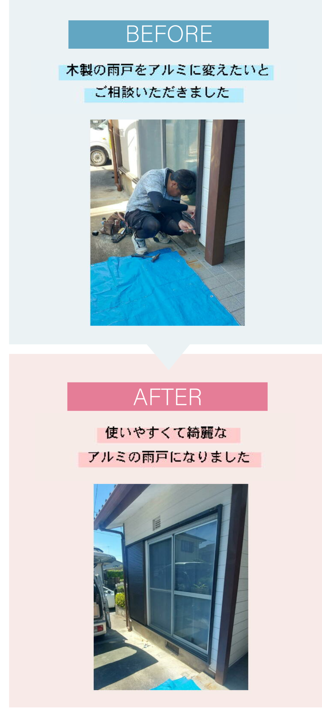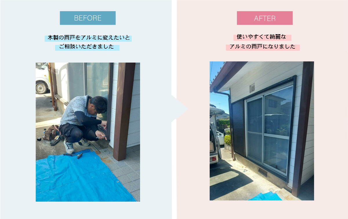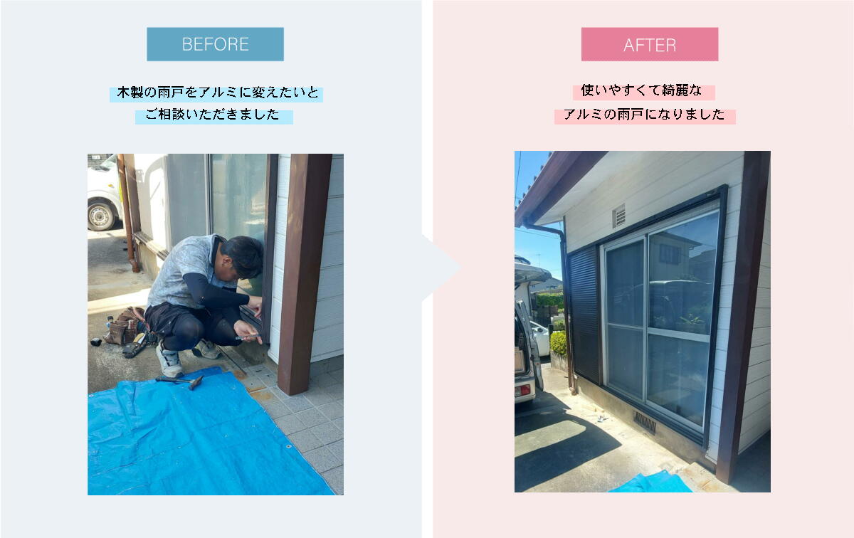 木製雨戸から開け閉めが楽で使いやすいアルミの雨戸に。