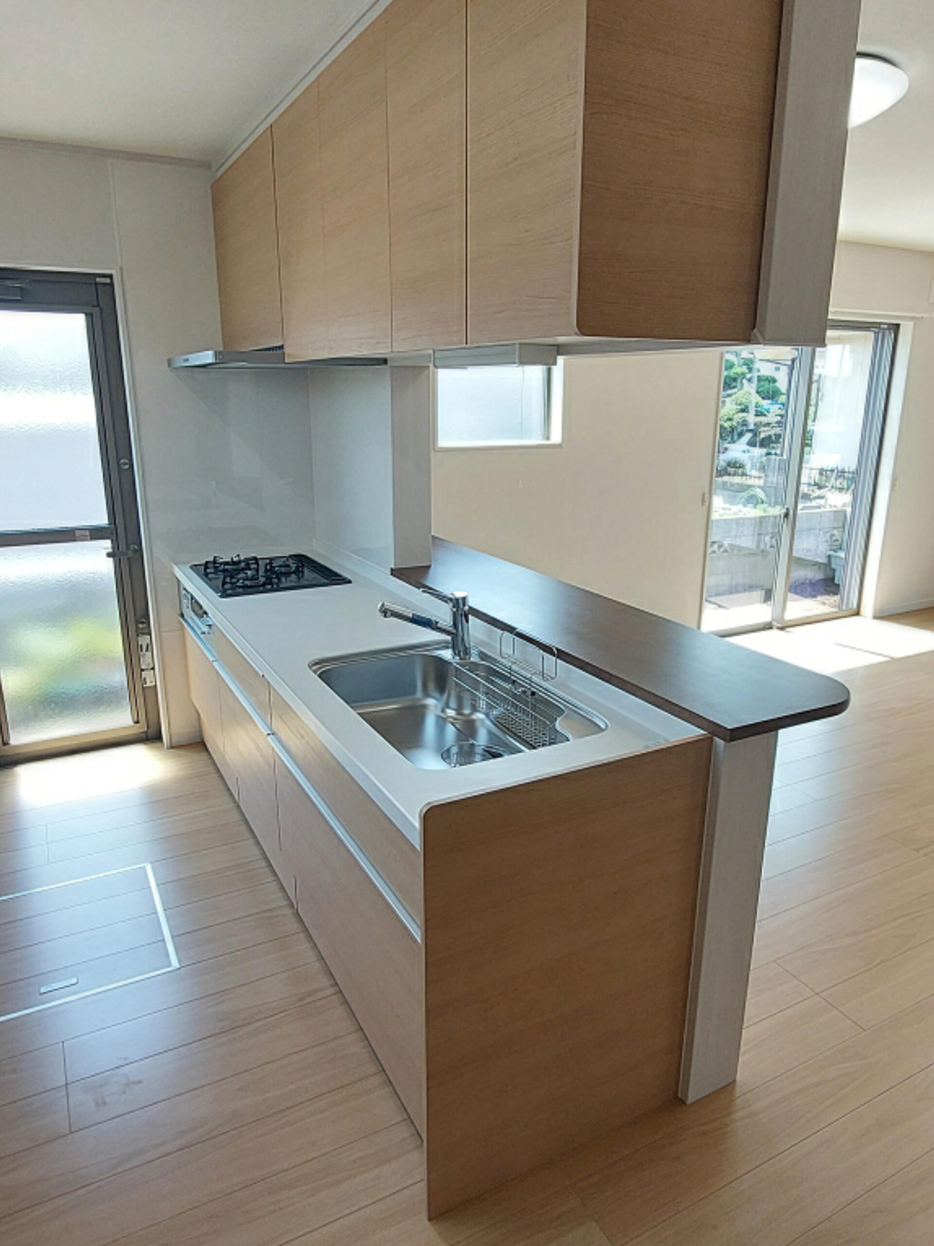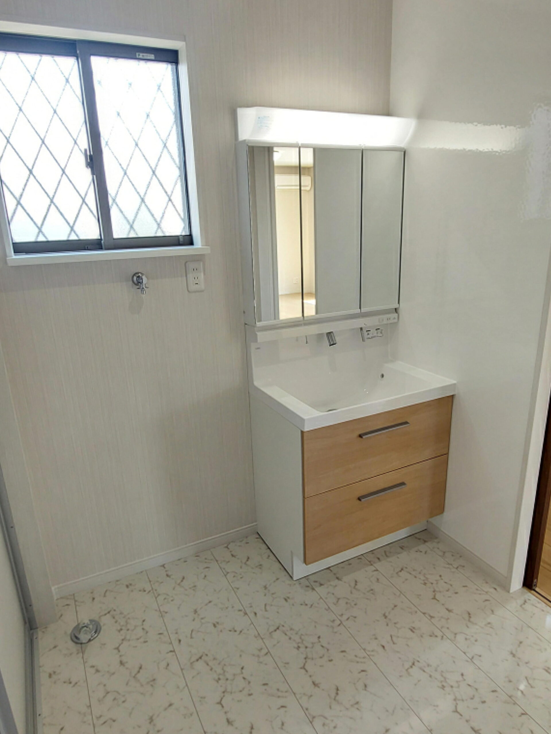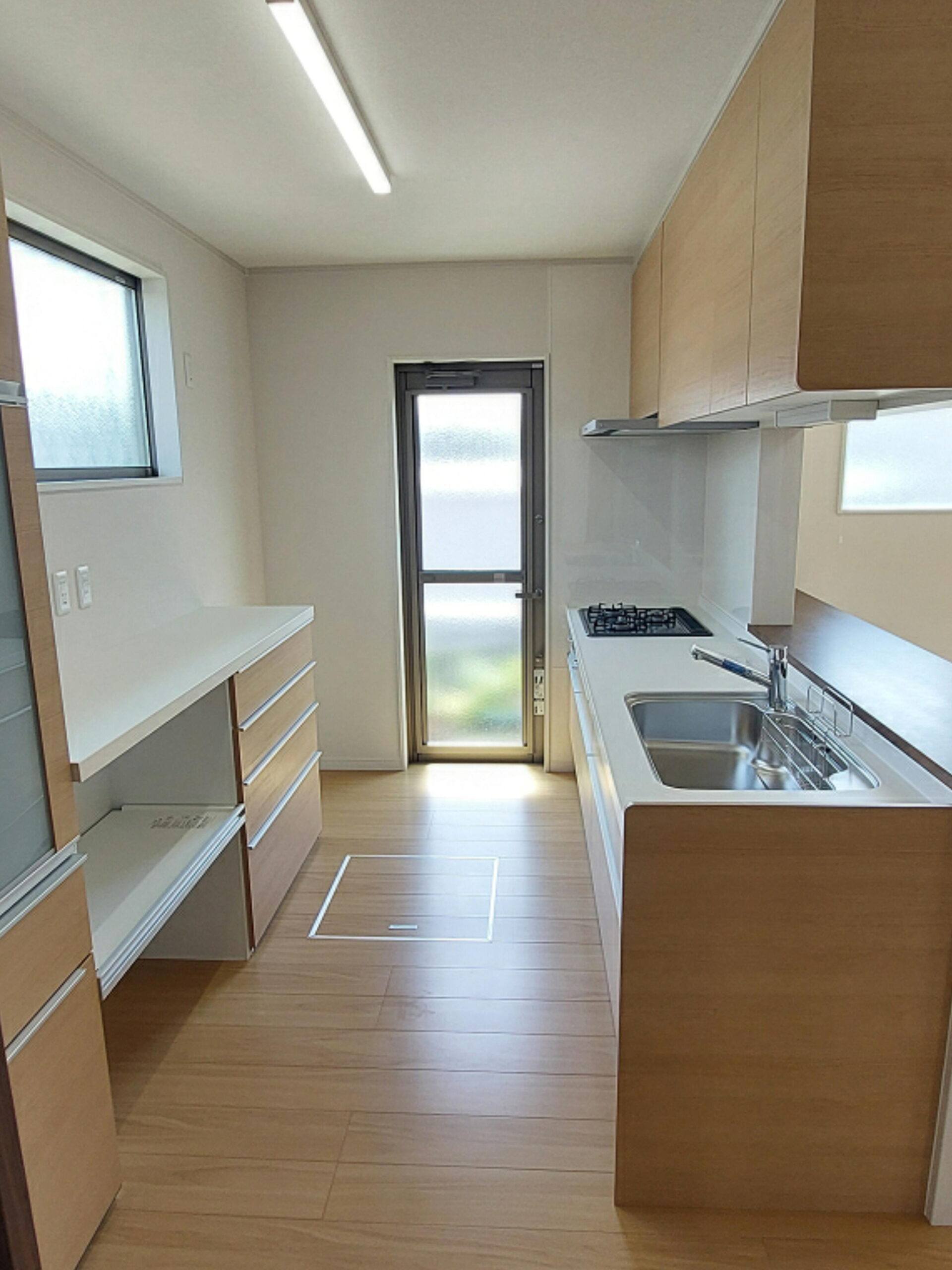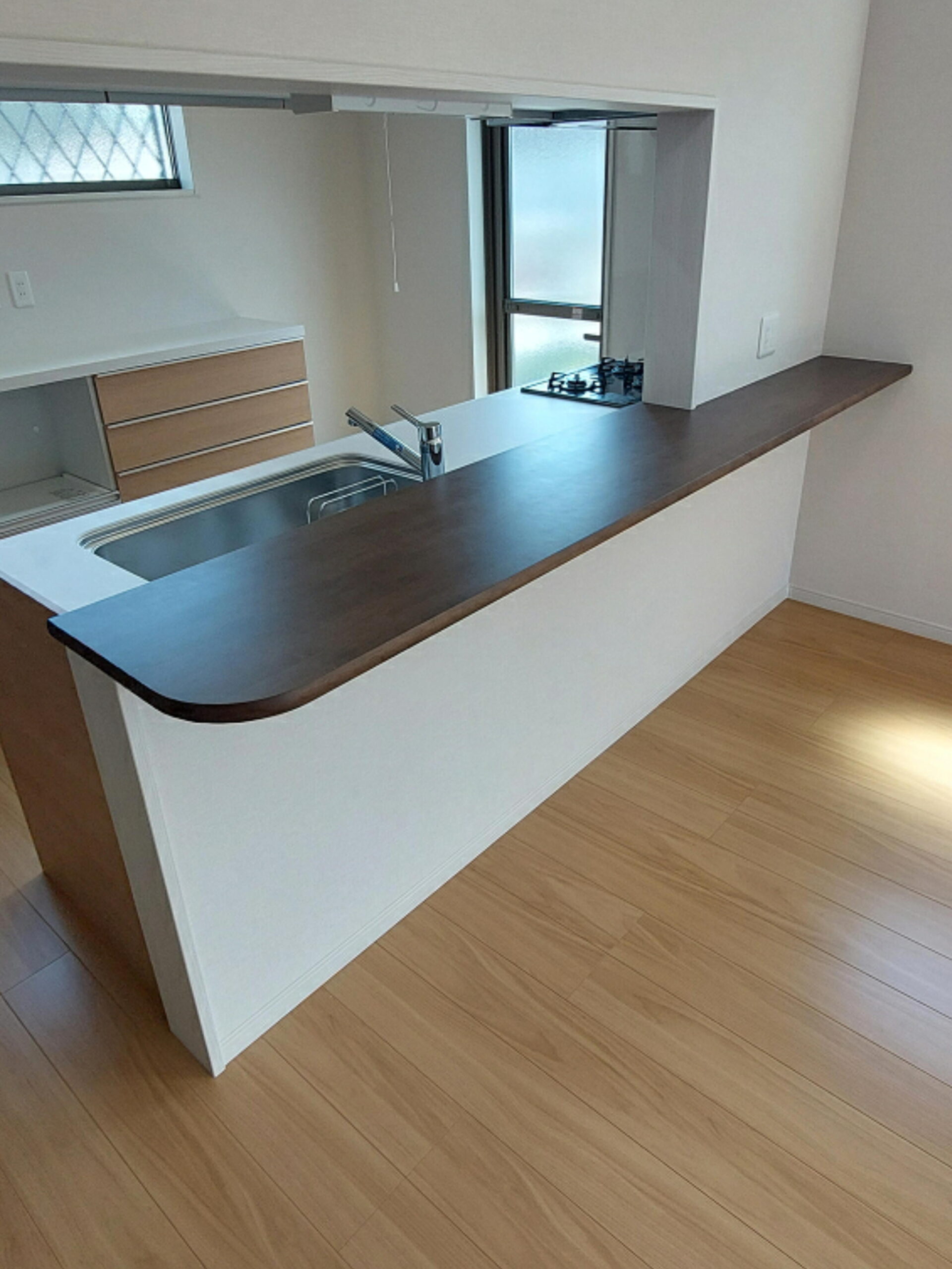 玄関ホールが広いことで空間にゆとりが生まれ、開放感ある印象に。仏壇を置く和洋室も和紙調クロス、畳にもこだわり落ち着く空間になりました。キッチンから脱衣所と廊下に行ける動線で、日当たりも考えて間取りの打合せを行いました。広々と永く過ごしやすいお家になりました。